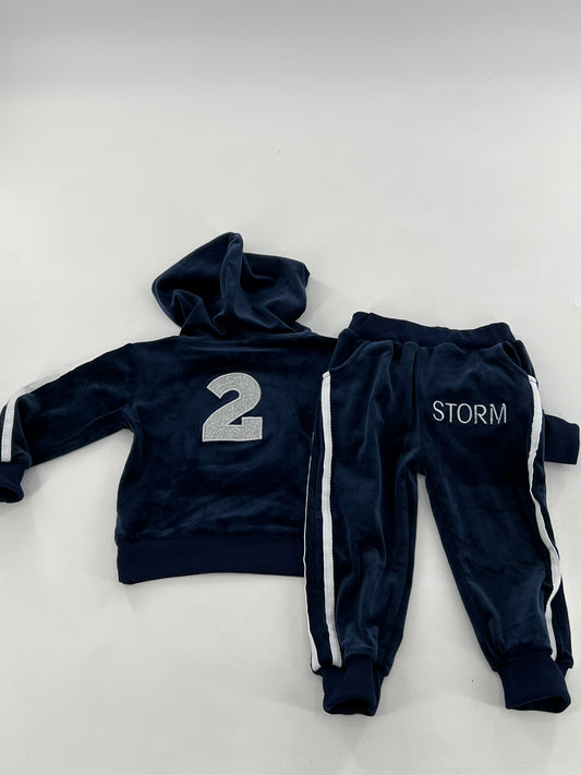2 Pc Velvet Hooded Tracksuit Pullover Top
