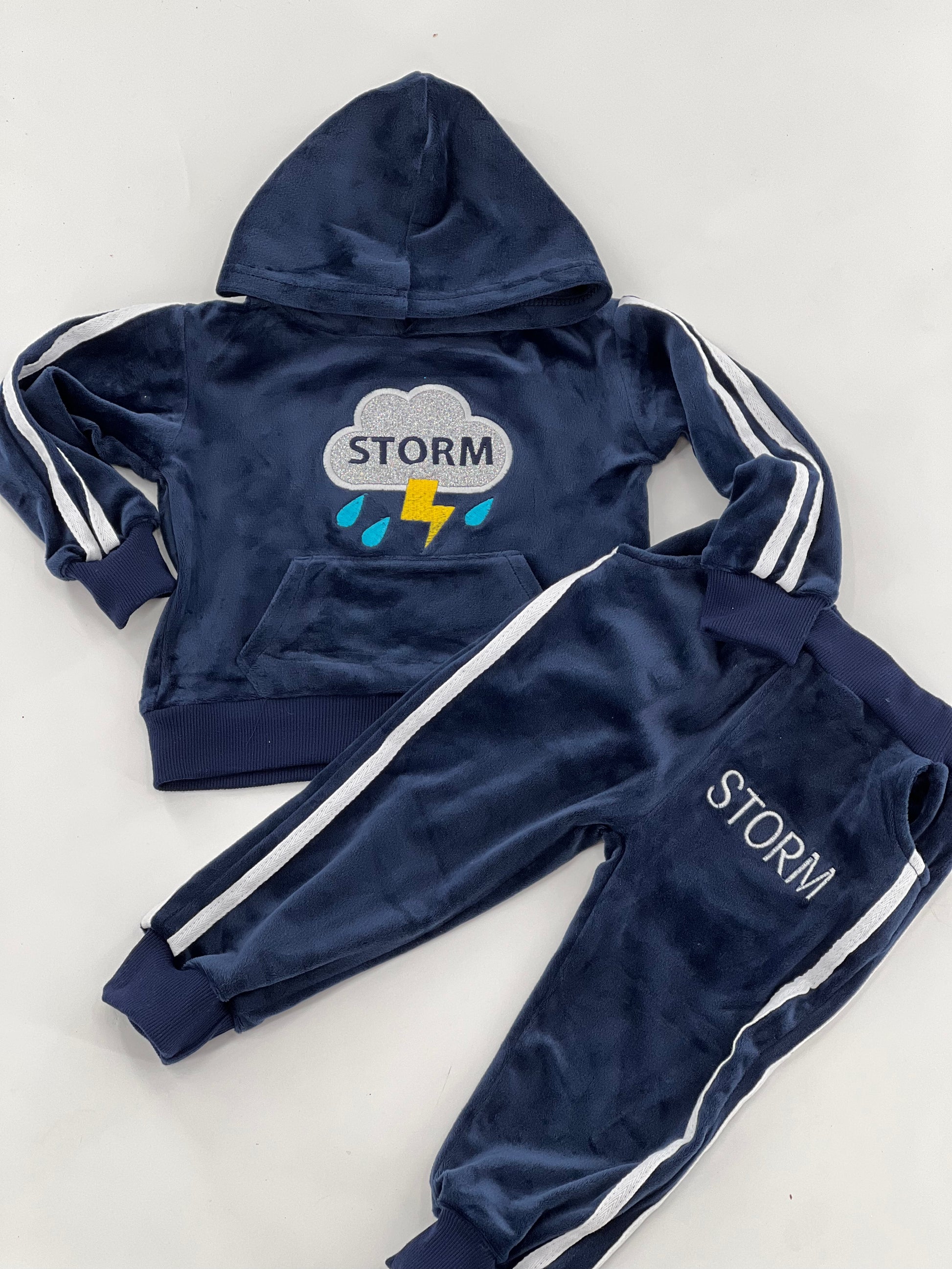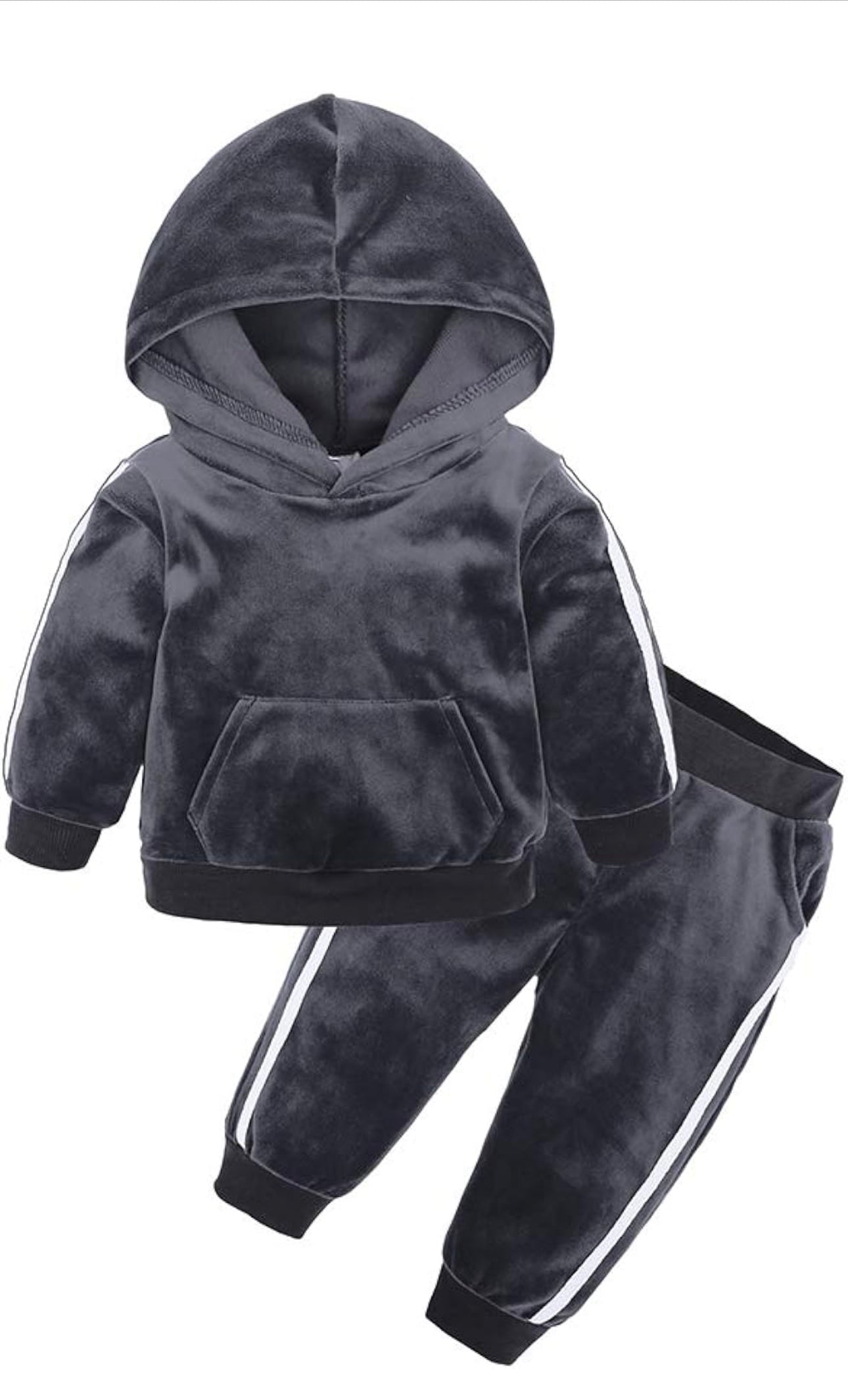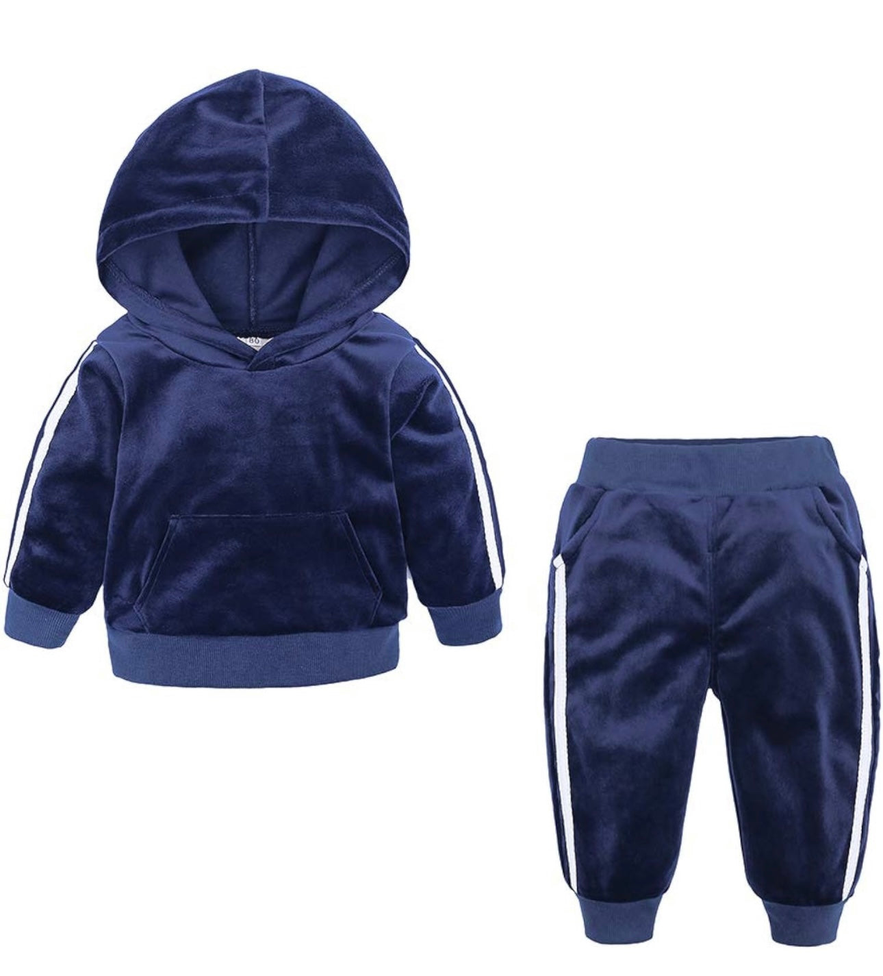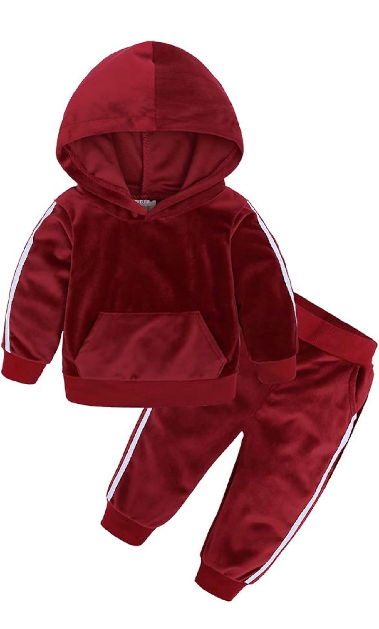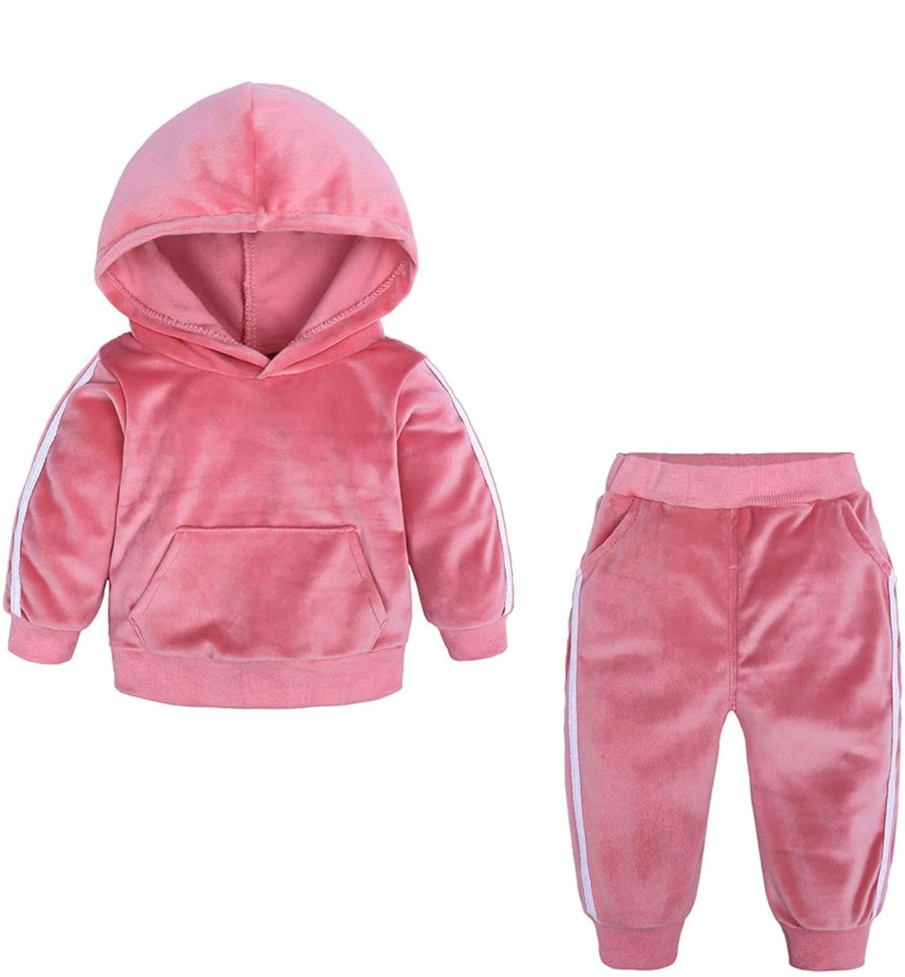2 Pc Velvet Hooded Tracksuit Pullover Top