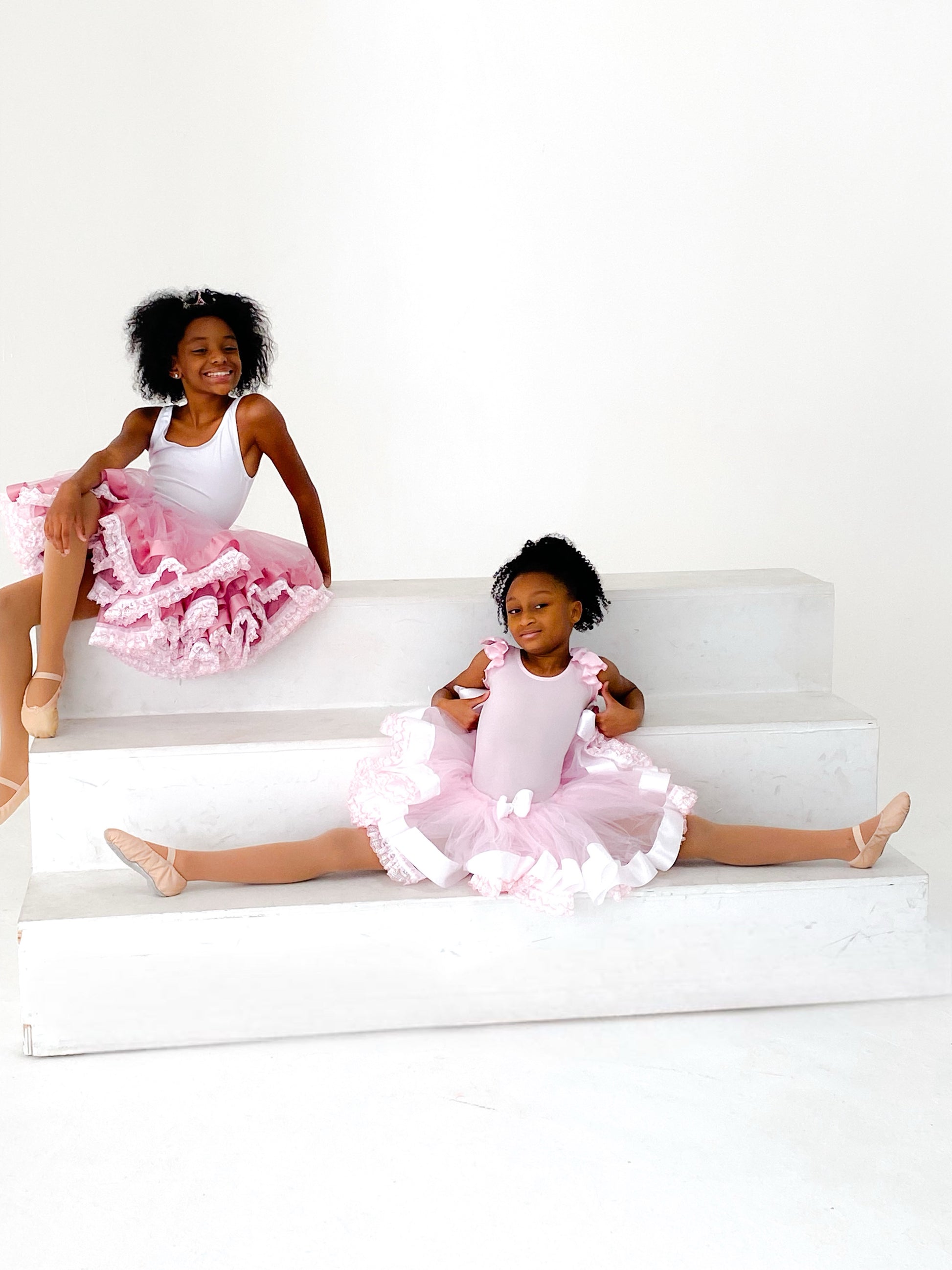 The tutus are made with a soft tulle material. The ribbon is sewn onto the bottom for durability. We use an elastic waistband so the tutu stretches and can fit longer. Please note tutu lengths are approximate and may vary slightly.